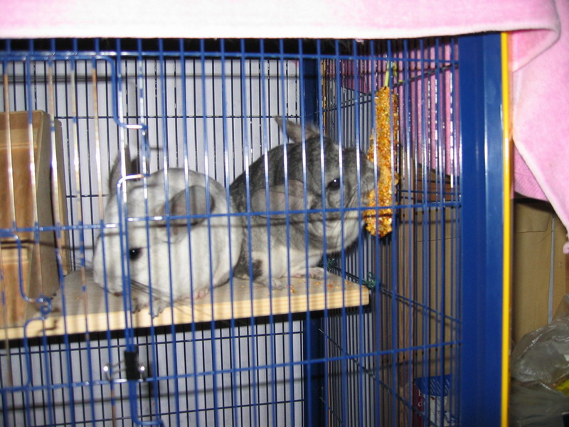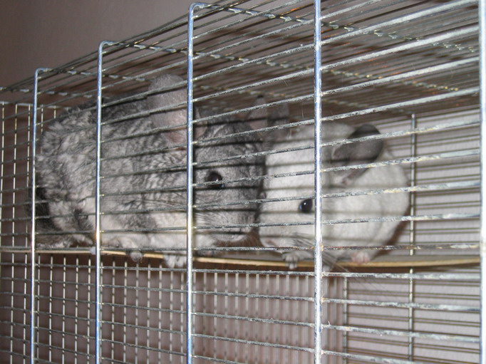Diese beiden süßen Pelznasen habe ich aus lauter Mitleid aufgenommen, da sie jemand so dringend loswerden wollte, dass er sie ausgesetzt hat..;( Und da ich schon immer Chinchillas haben wollte, habe ich es dann mal als Wink des Schicksals betrachtet...;) Leider hatten sie vorher wohl noch nie ein Sandbad und auch viel zu viel und schlechte Ernährung, sodass sie nicht gerade wirklich schön aussahen und sich anfühlten, aber so langsam wird es...;)
